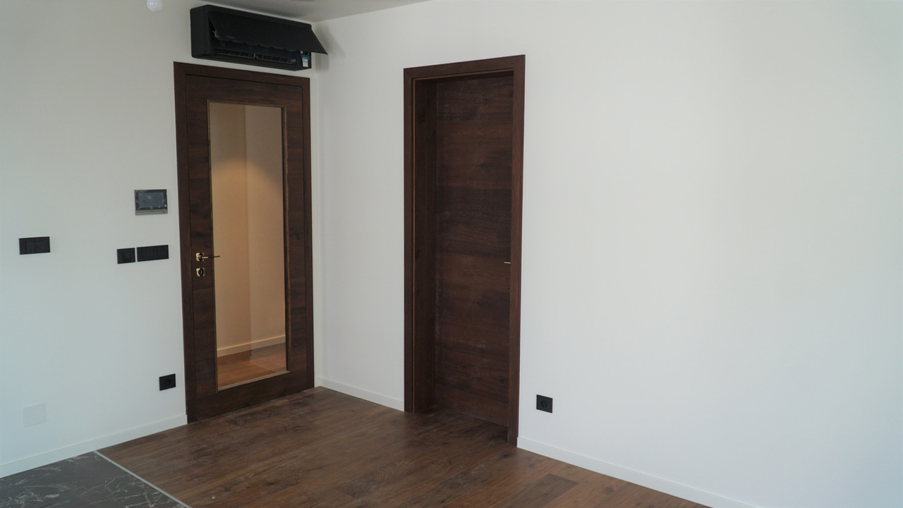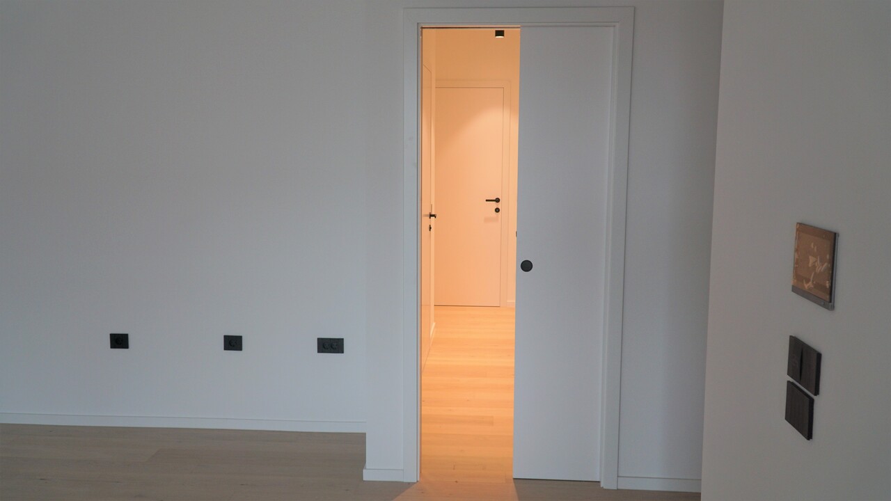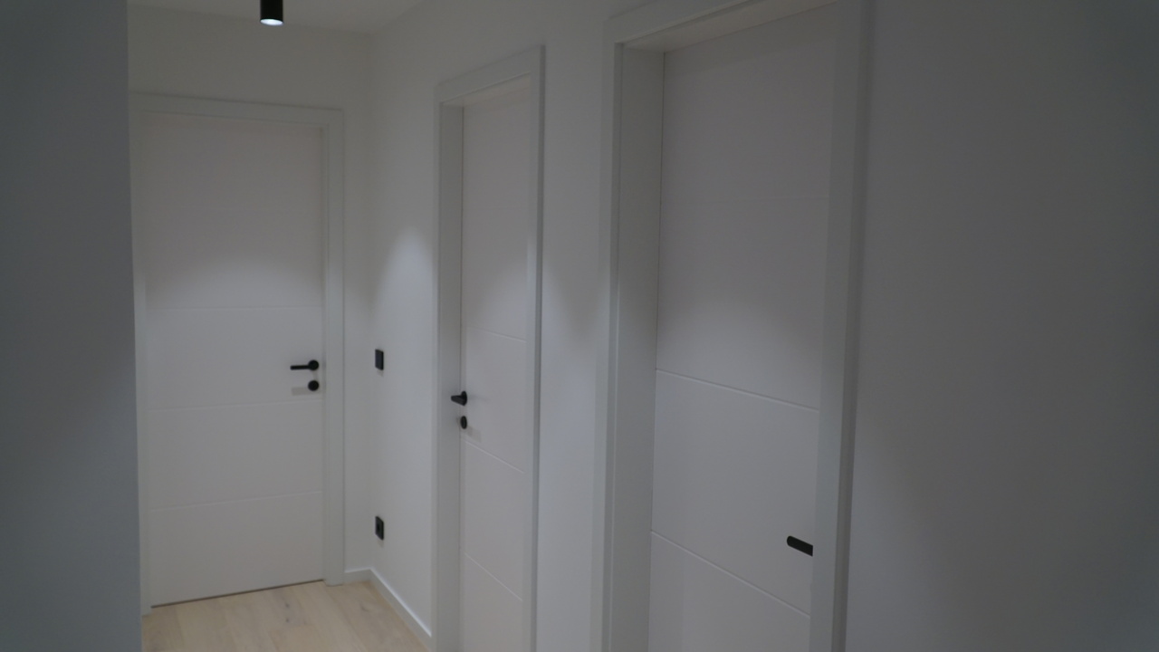 Sobna vrata važan su dekorativni element koji može naglasiti ambijent i individualni stil stambenog prostora. U ovom objektu, koji karakterizira odmjerena arhitektura čiji je fokus udobnost i kvaliteta stanovanja odabrana su i postavljena vrata Lipbled. Radi se o unutarnjim zaokretnim vratima iz programa TRENDline COLORline MODENA, bijelo obojana poliuretanskom bojom RAL 9003 sa skrivenim niklanim OTLAV pantima i crnim kvakama model LUCE DND by MARTINELLI.